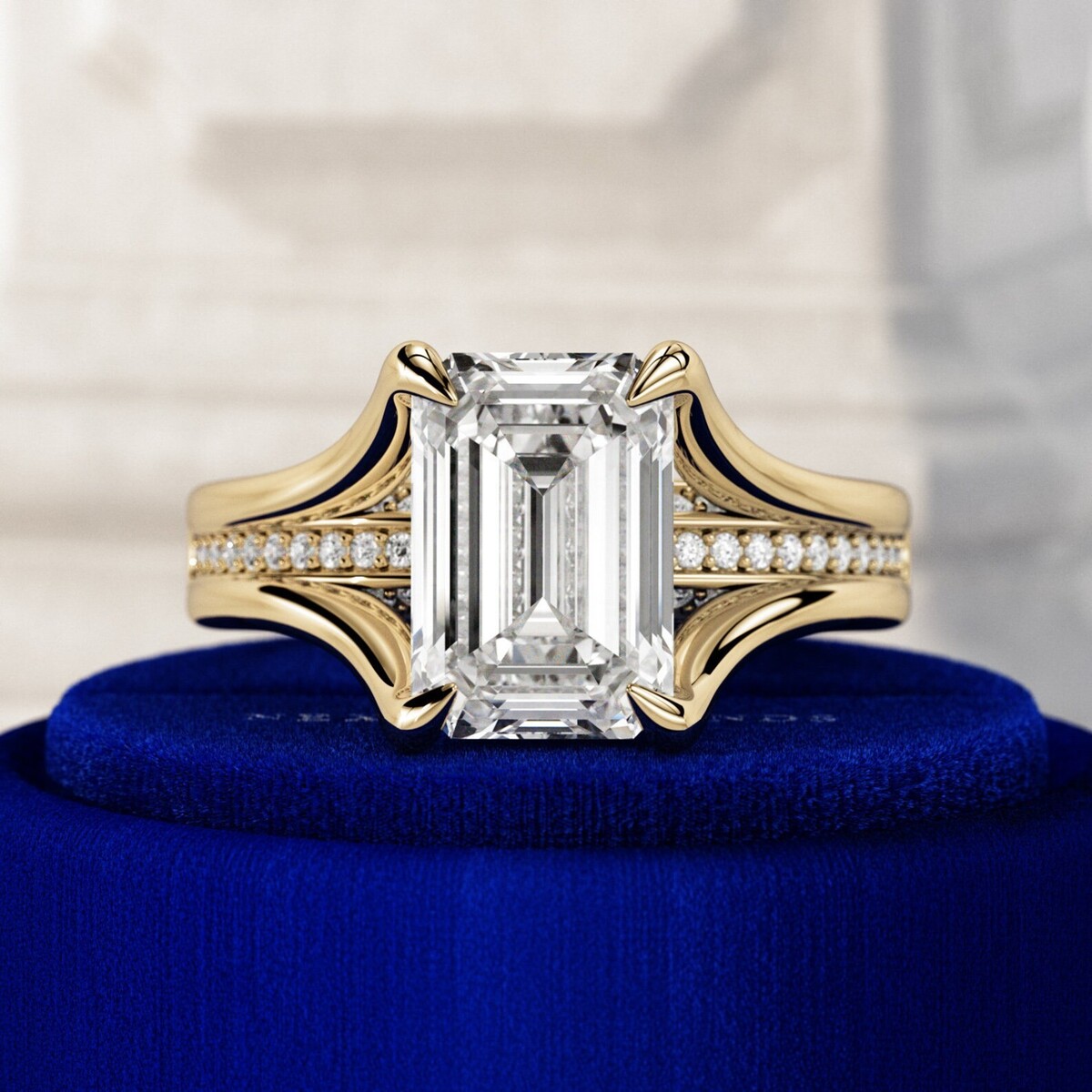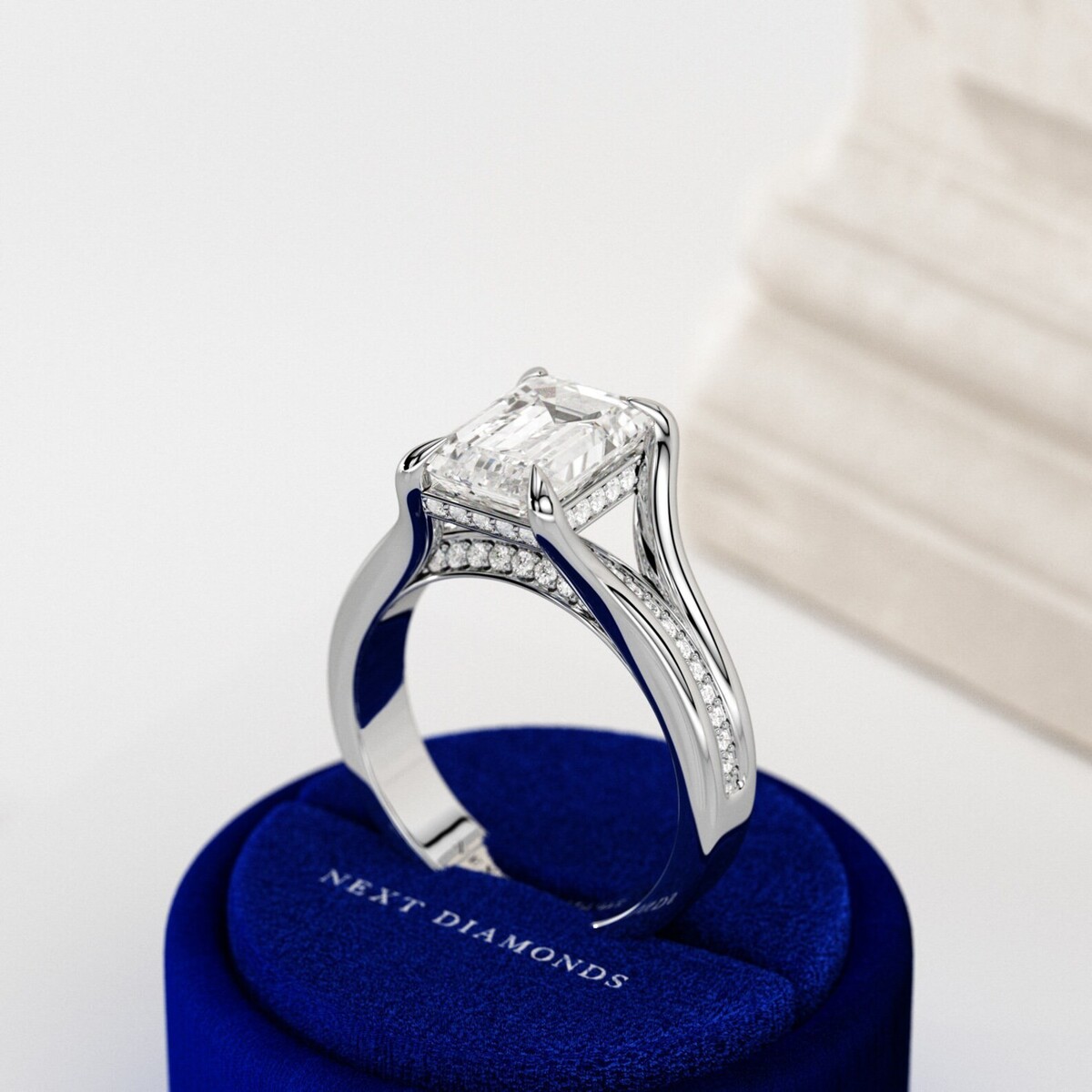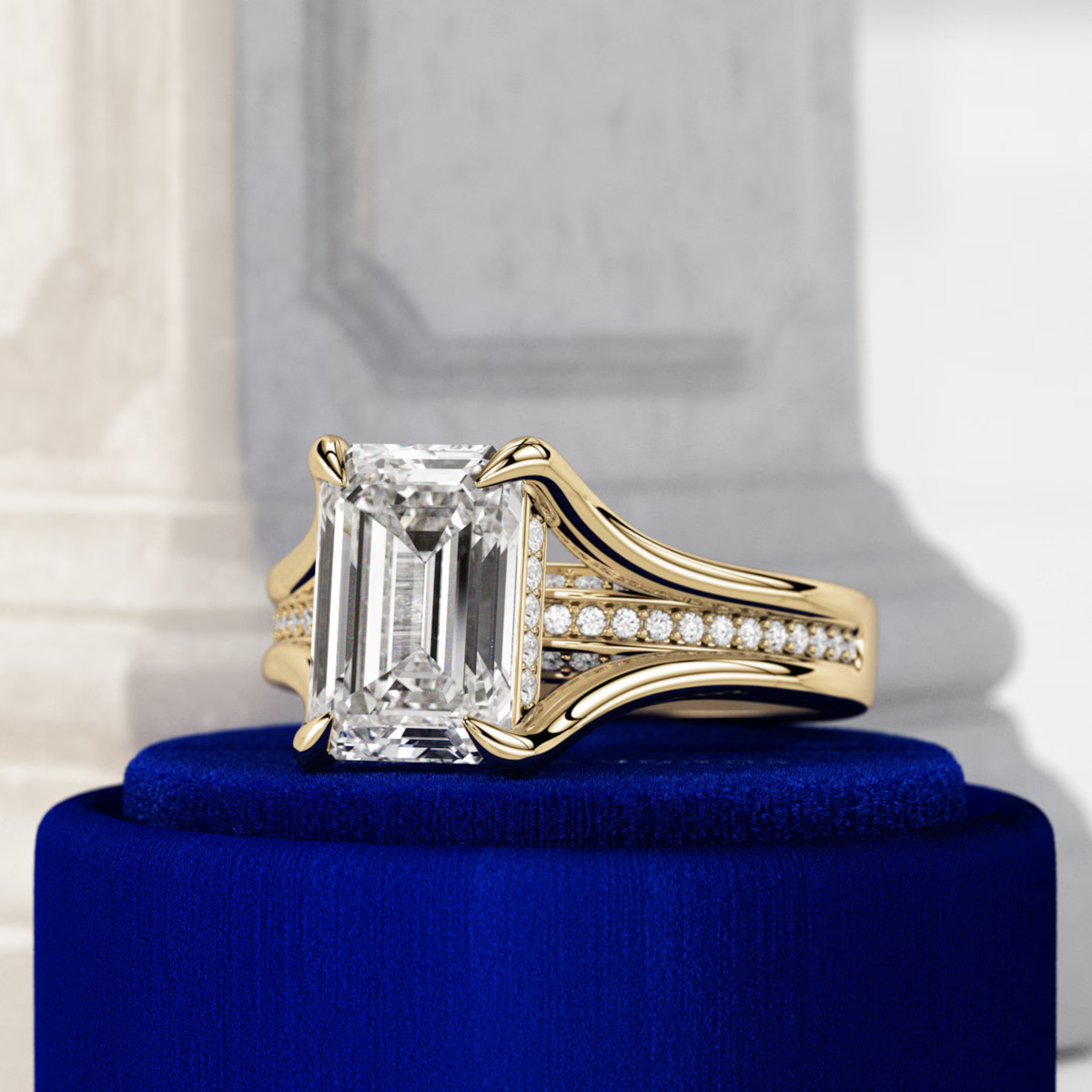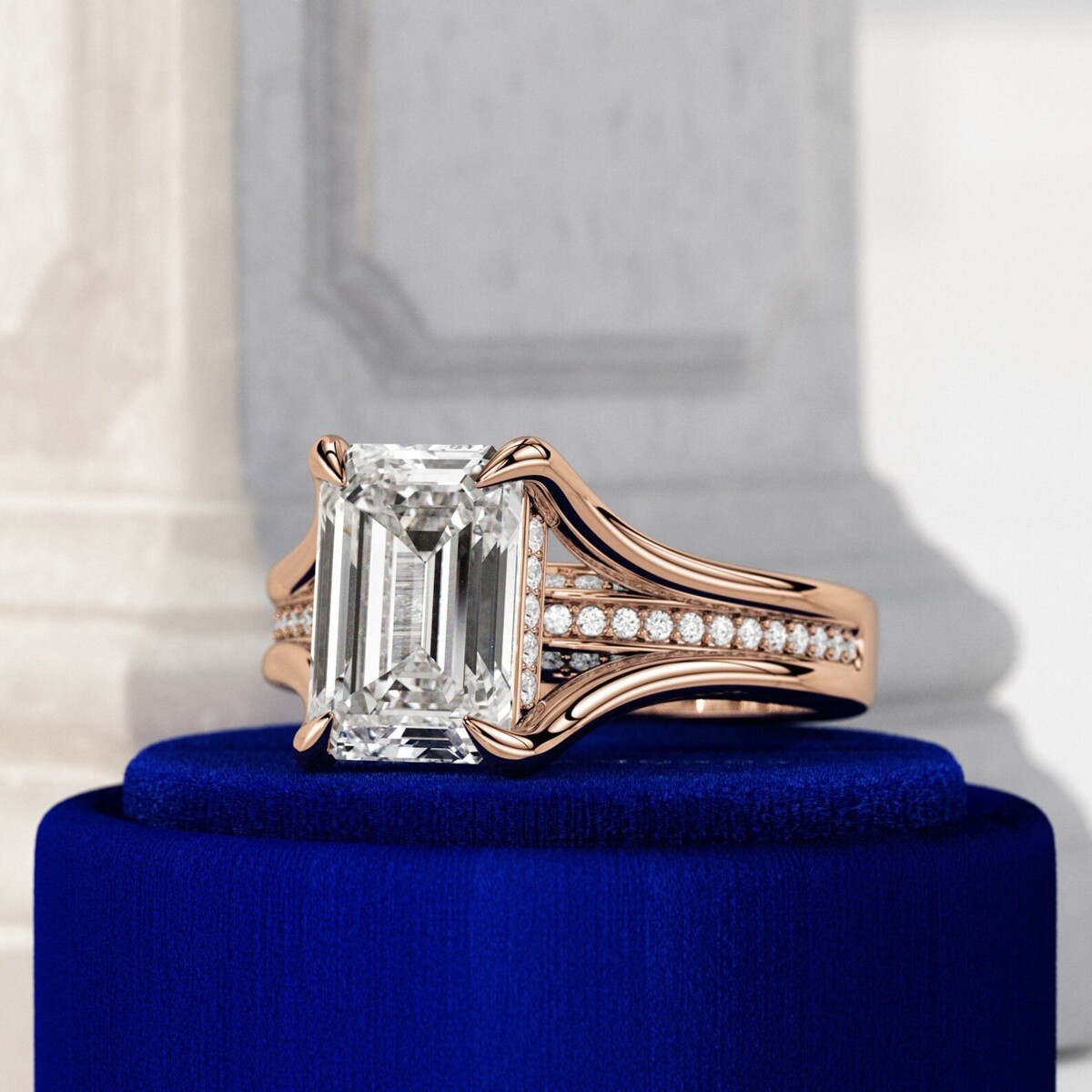 ? 3 Carat Emerald Cut Lab Grown Diamond Ring ? F+/VVS2+ ? 0.3 Carat Round Side Stones ? 14k Gold (Rose/Yellow/White) ? IGI/GIA Certified