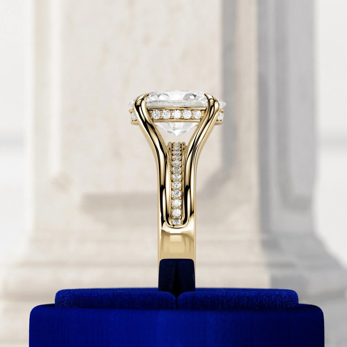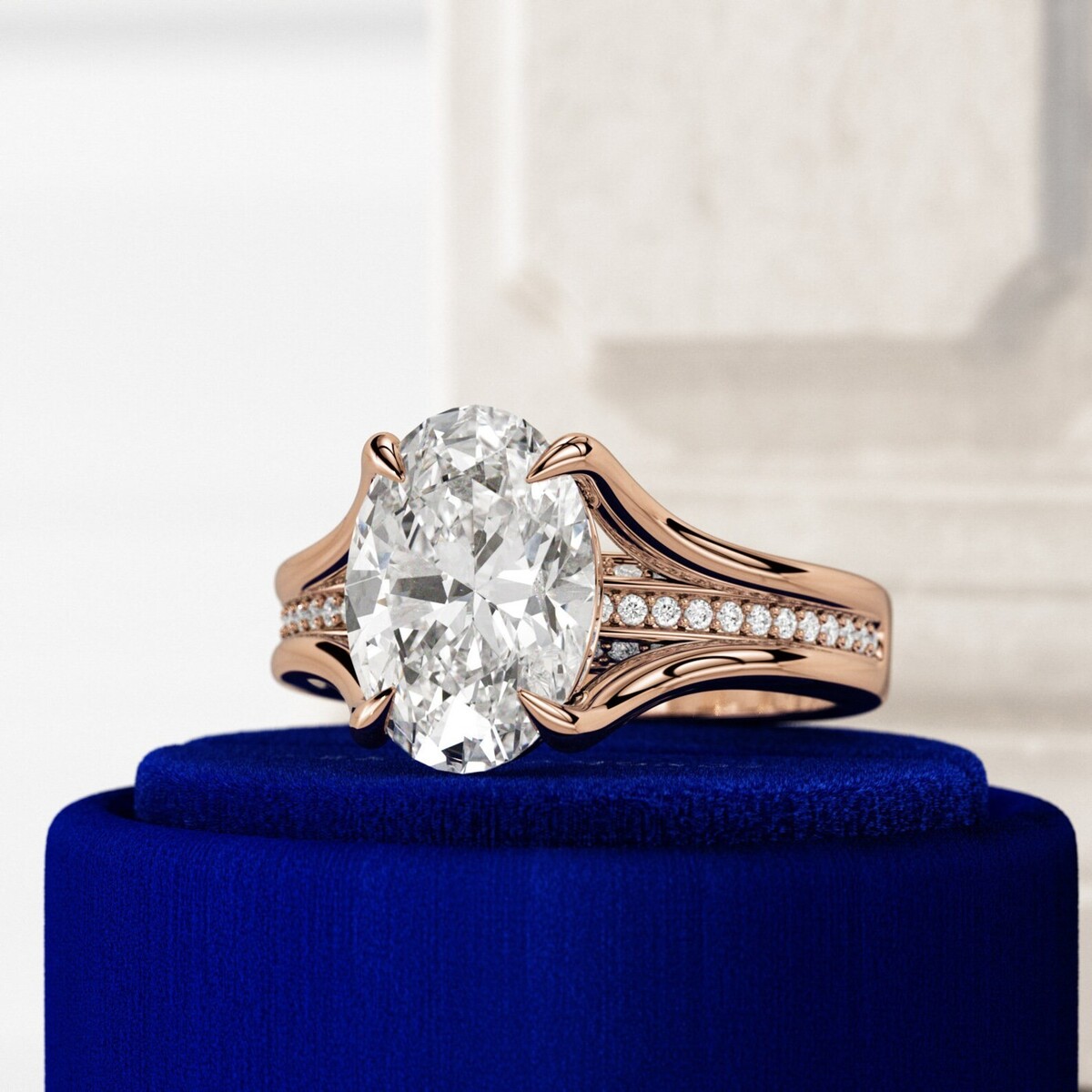 - 3 Ct Oval F /VS1 Lab Grown Diamond Split Shank Unique Illusion Engagement Ring