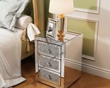 3-Drawer Mirrored Nightstand - Silver Glass Bedside Accent End Table