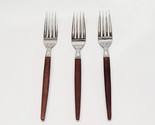 3 - Ekco Eterna Canoe Muffin Dinner Forks Stainless Flatware Faux Wood Japan MCM