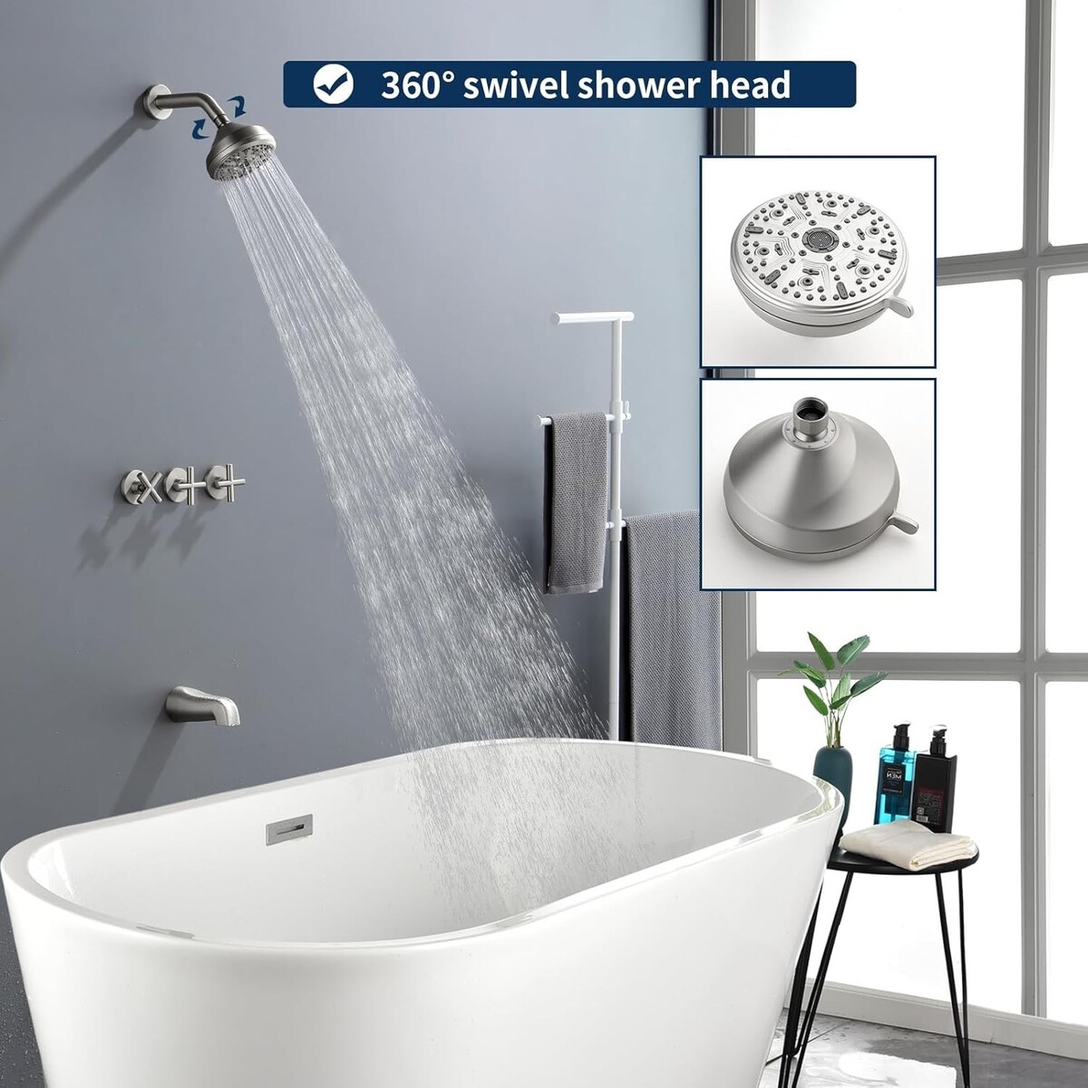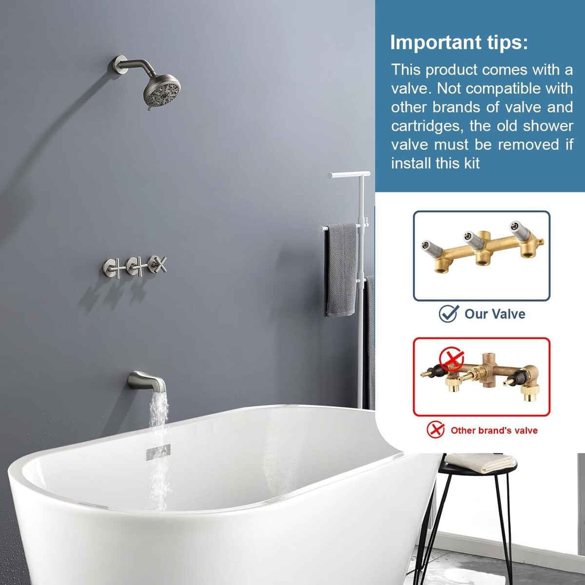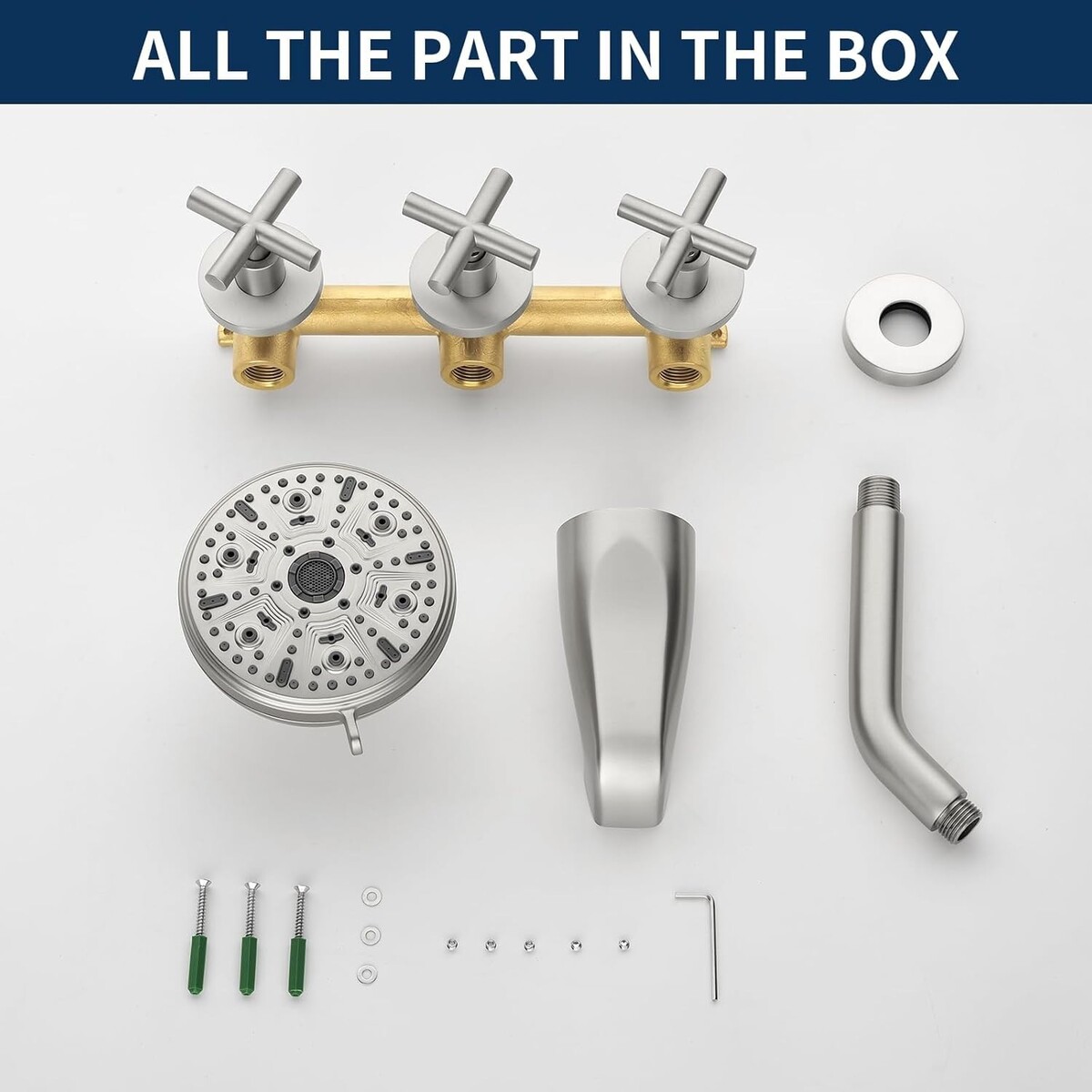 3 Handles Shower Faucet Set with Tub Spout Bathtub Shower Faucets Combo Set Shower System Complete Tub and Shower Trim Kit Brushed Nickel Shower Fixtures