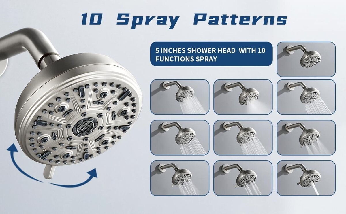 3 handle tub shower faucet set: with 5 inches shower head with 10 modes brings you more different shower experience.