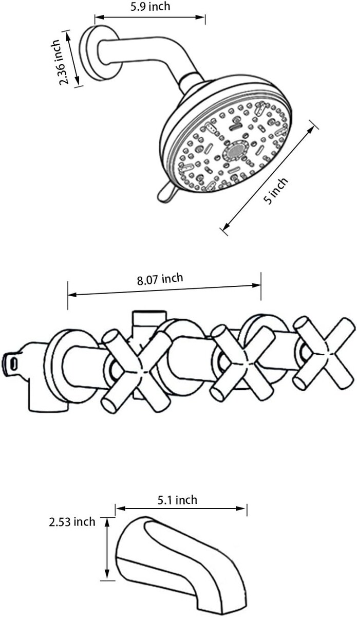 3 Handles Shower Faucet Set with Tub Spout Bathtub Shower Faucet Combo Set