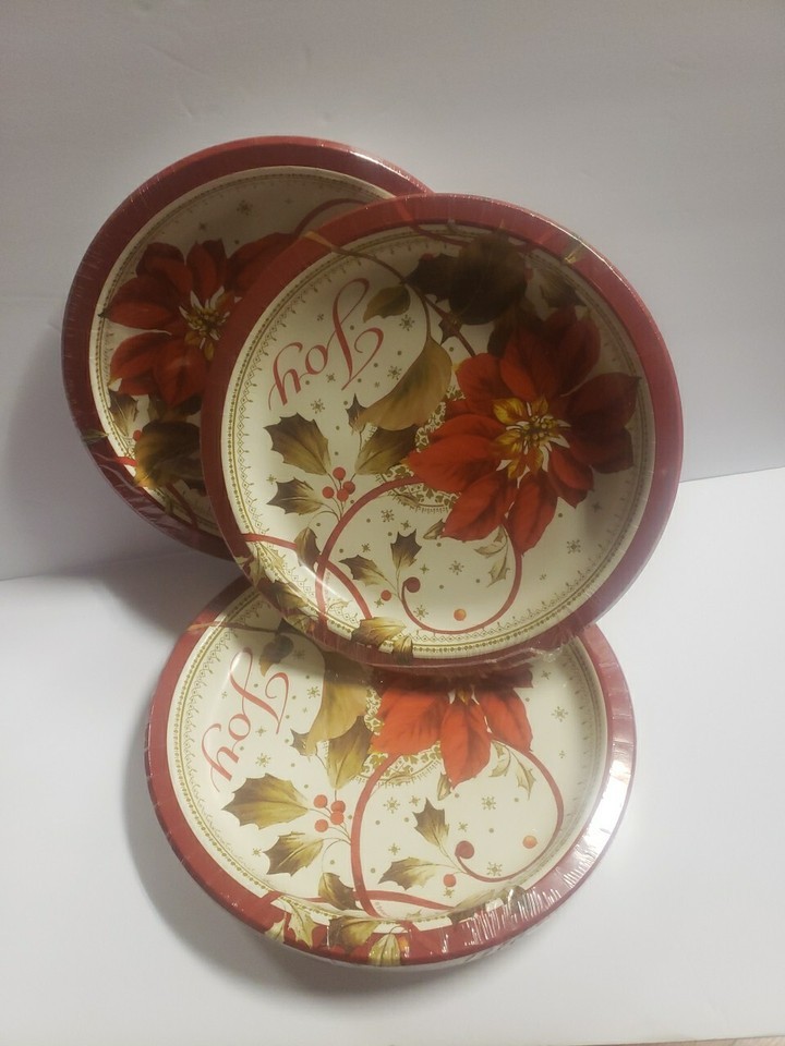 - 3 Lots Of 12 Pcs Christmas Poinsettia Paper Plate Disposable