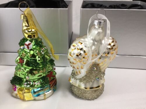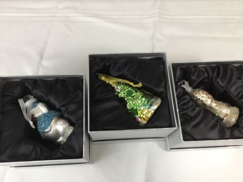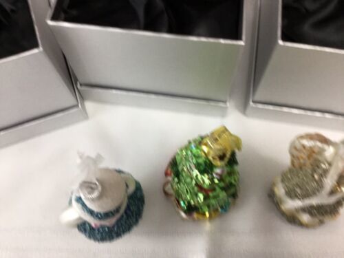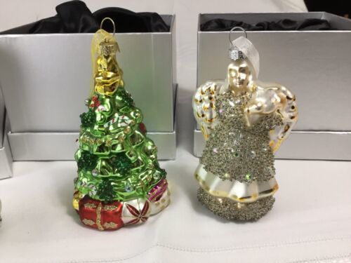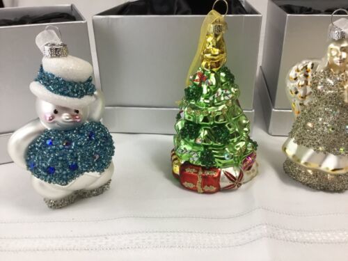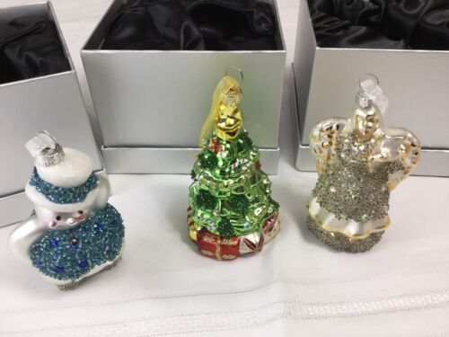 - 3 Mercury Glass Ornaments Gift Box Valerie Par Hill QVC NIB Angel, Tree, Santa