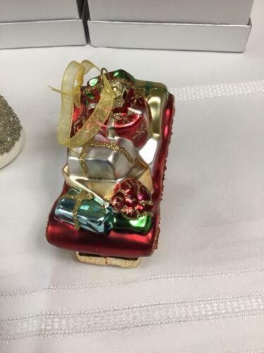 3 Mercury Glass Ornaments Valerie Par Hill QVC Gift Boxed, NIB Santas, Sleigh.
