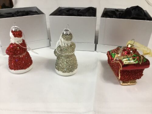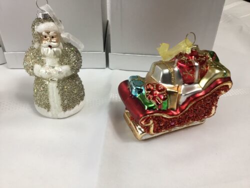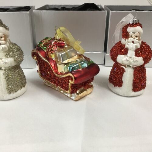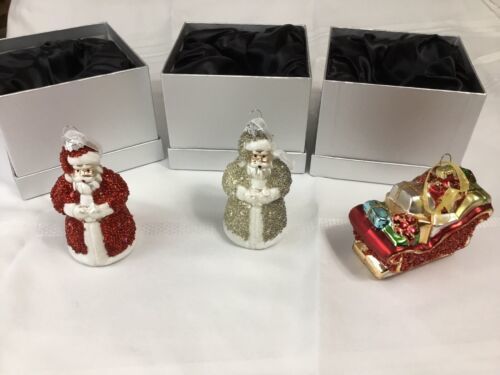 - 3 Mercury Glass Ornaments Valerie Par Hill QVC Gift Boxed, NIB Santas, Sleigh
