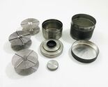 3 Metal 35mm reels good condition. 1 35mm metal tank good condition. 1 metal 3 inch tall tank stained on the outside See the pictures