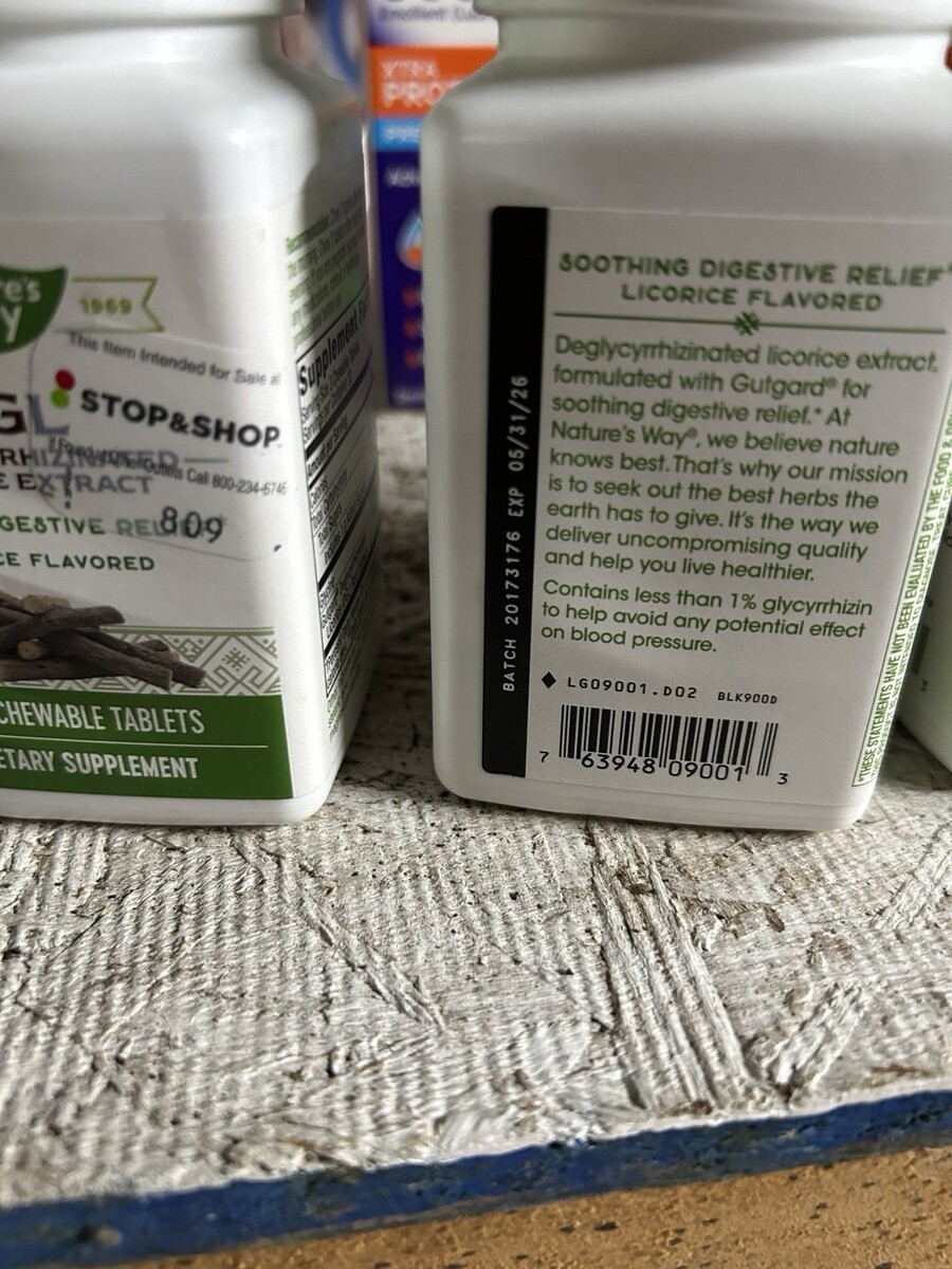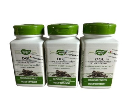 - 3 Nature's Way DGL Digestive Relief Deglycyrrhizinated Licorice 100 Tablets Each