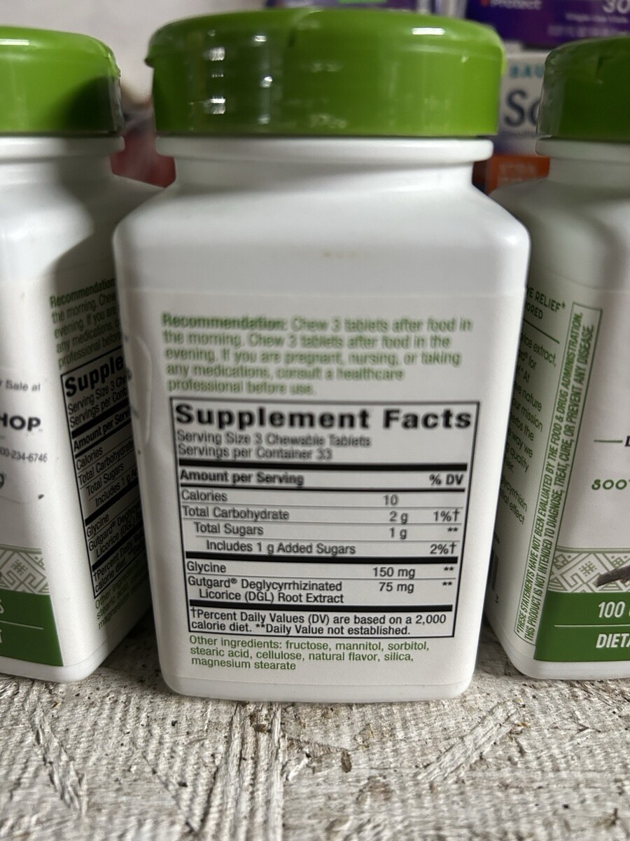 3 Nature's Way DGL Digestive Relief Deglycyrrhizinated Licorice 100 chewable Tablets Each