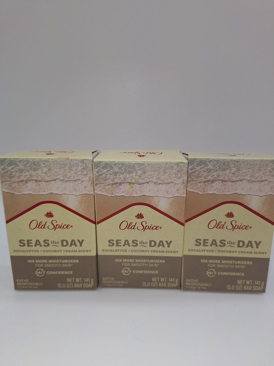 - 3 - Old Spice Bar Soap Seas The Day Eucalyptus & Coconut Cream 5 Oz