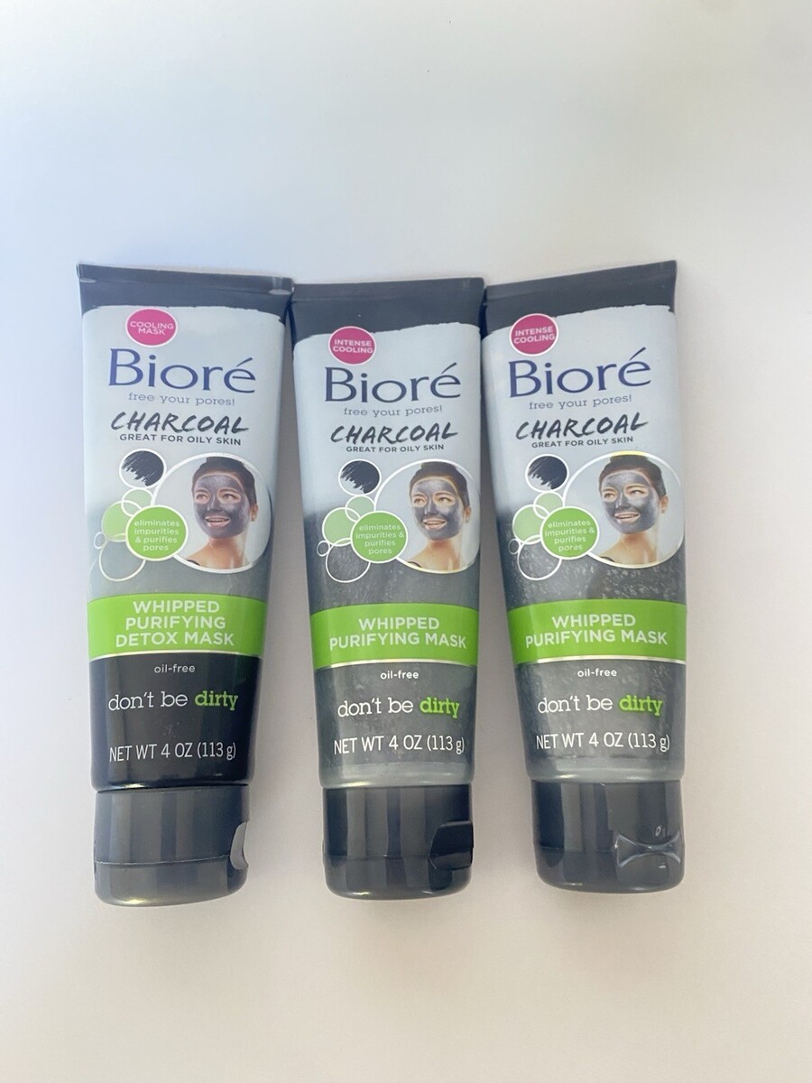 - 3 Pack Biore Charcoal Whipped Purifying Mask 4 Oz Each Great For Oily Skin