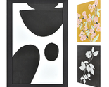 Change your wall decor to reflect a new theme of the day with this 3-piece interchangeable wall print set plus frame by Beautiful. Each set includes two bygone botanical motifs, one in charming color and the other in classic black and white, with a modern twist. The third print is a unique abstract featuring black geometric shapes on a white background, perfect for adding a creative touch. The frame with a glass cover is well-crafted and securely fits all three prints stacked on top of each other, making it easy to store the ones you are not using. Try out this set in different rooms and instantly watch the space come to life. Hanging this piece is a breeze, thanks to the discreetly placed D-ring hanger on the back, ensuring an easy and balanced hang. Switching out the prints is also easy. Remove the back cover by moving the frame points, and select the image you want by moving it to the top of the stack!