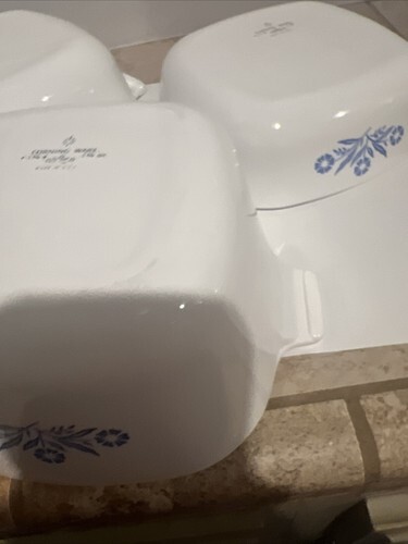 - 3 Piece Corning Ware Blue Cornflower set Lids 1qt 1.5qt 1.75qt