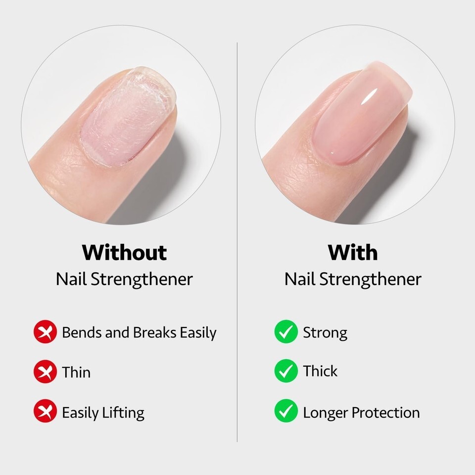 Nail Strengthener: Apply our self-leveling strengthener gel to create strong, natural nails that resist lifting.