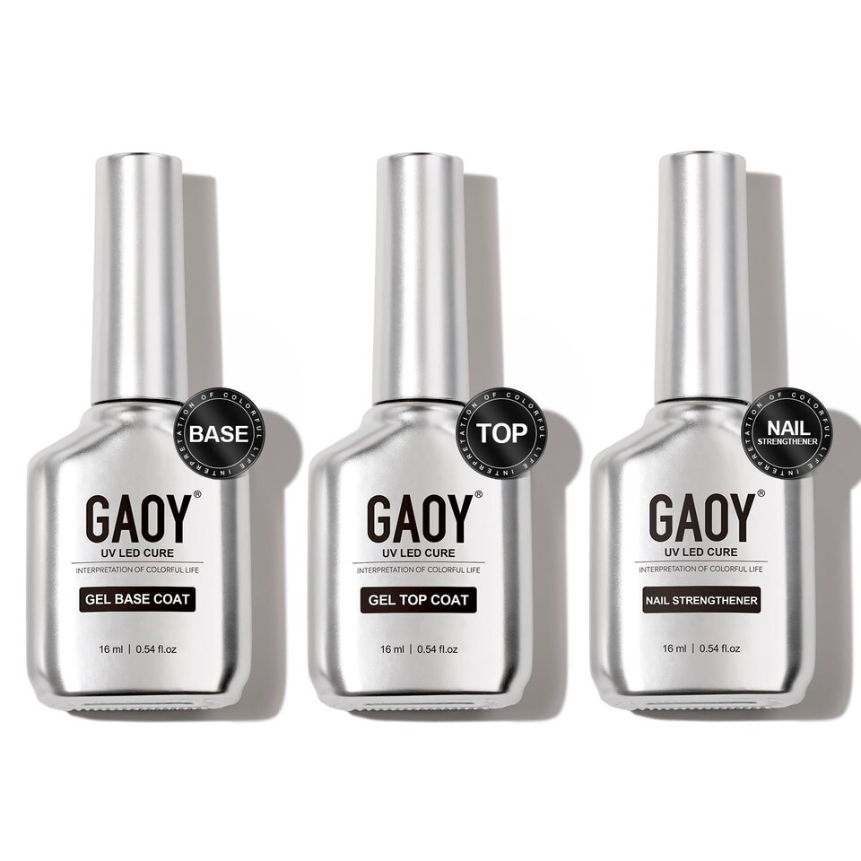 3-Piece Gel Nail Set: Top Coat, Strengthener Base Coat - Up to 4 Weeks Wear