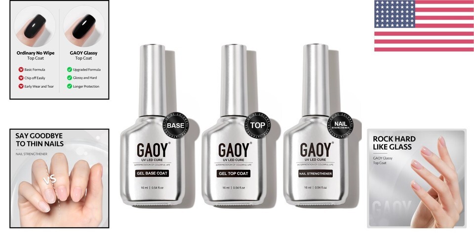 Transform your at-home manicure experience with our luxurious 3-Piece Gel Nail Set, featuring a Top Coat, Nail Strengthener, and Base Coat, designed for the sophisticated individual who seeks perfection in every detail.