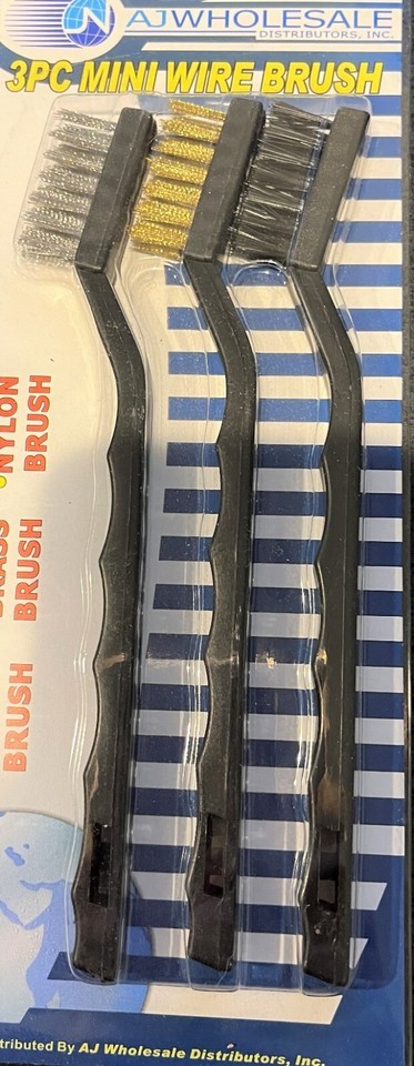 - 3 Piece Heavy Duty Mini Wire Brush Set, Nylon, Brass & Steel Bristle Brushes