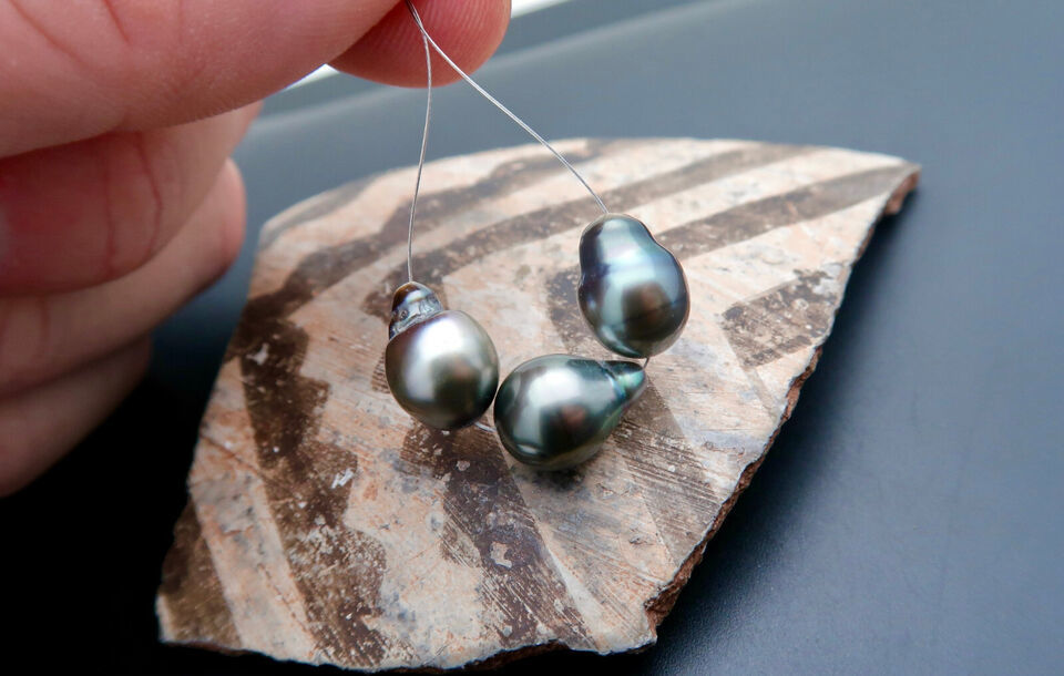 3 RARE AA+ RIKITEA MANGAREVA GAMBIER ISLES BLACK & VERY COLORFUL PEARLS