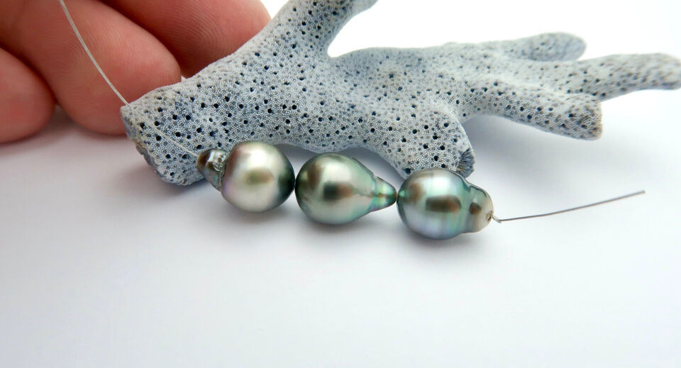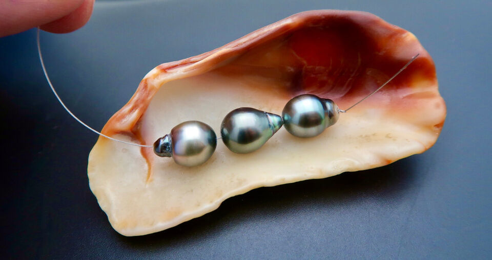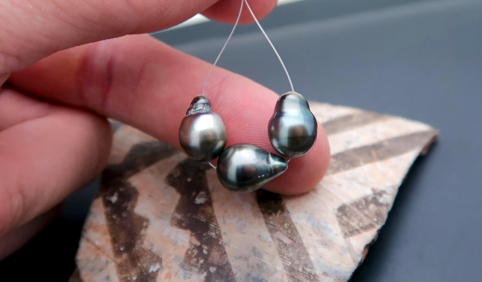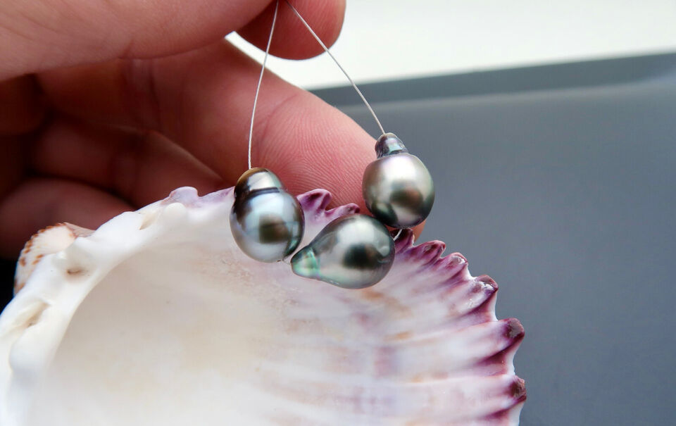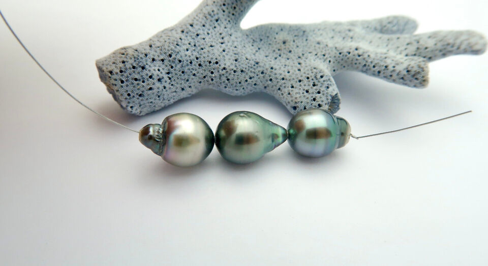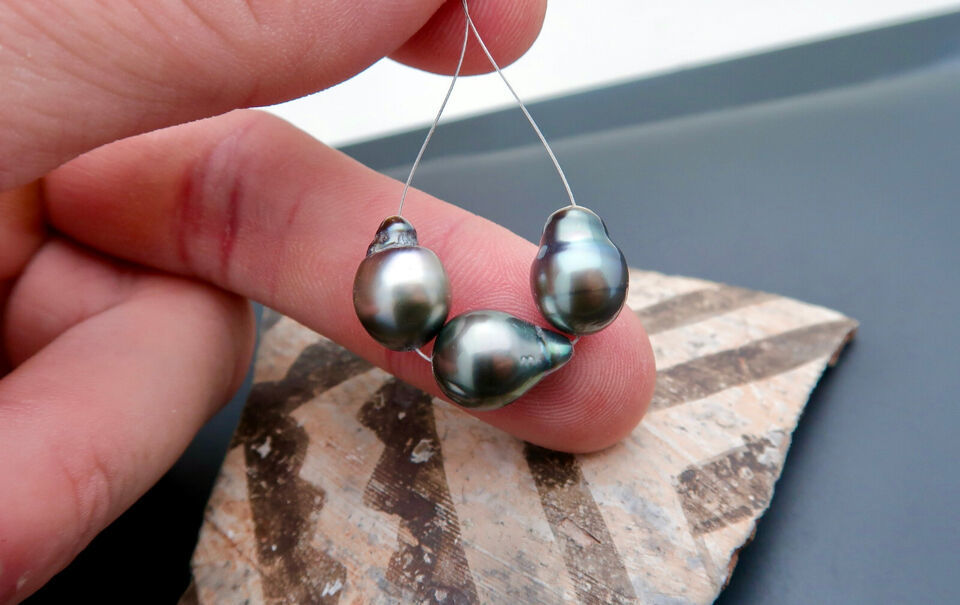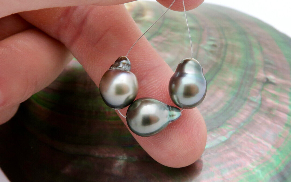 - 3 RARE AA+ RIKITEA MANGAREVA GAMBIER ISLES BLACK & VERY COLORFUL PEARLS