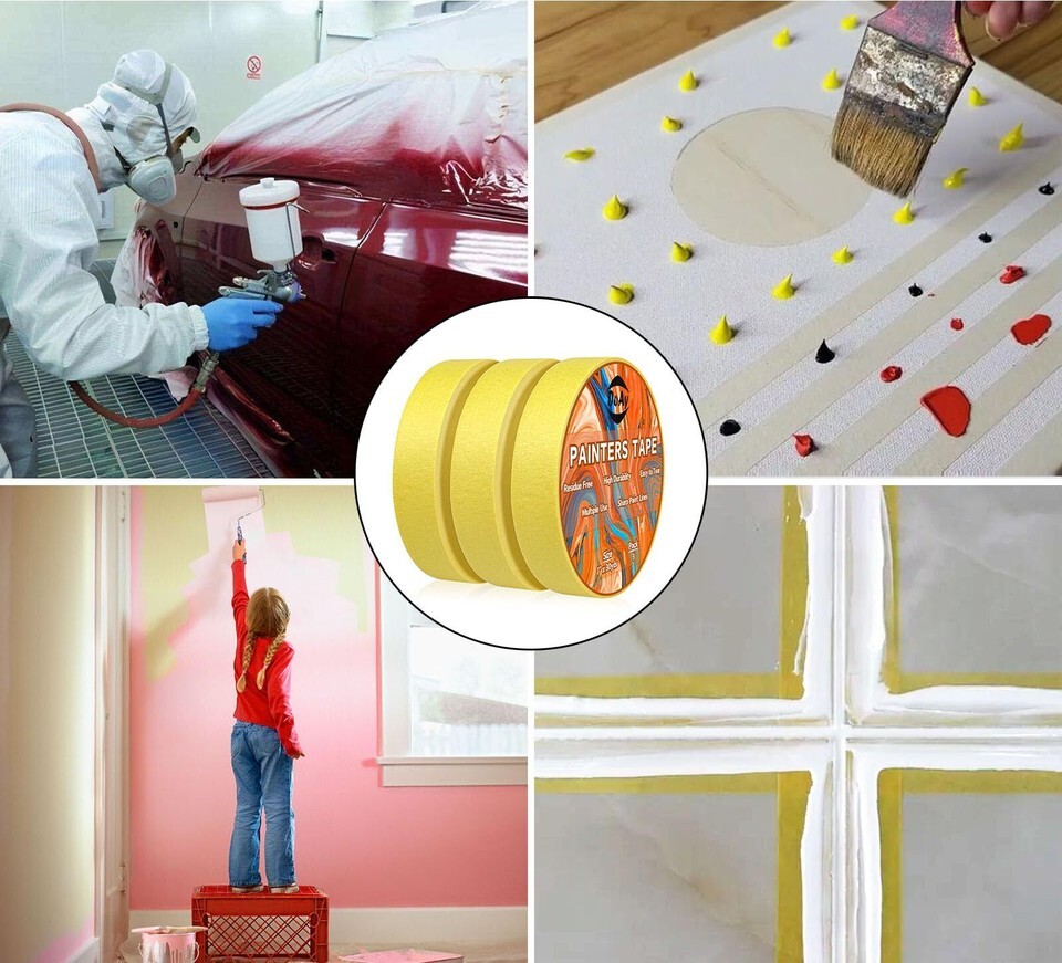 - 3 Rolls Yellow Painters Tape Masking Tape Adhesive For Label Art Car 270FT Total