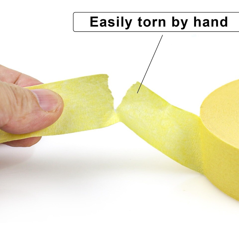 ??SAVE TIME?: Save time preparing for painting with our easy to tear crepe paper tape that will stick to almost all surface including wood, dry wall, painted dry wall, and more.