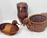 - 3 Vintage 1970s Bird Baskets Owl Turkey Dove Food Storage Plant Holders