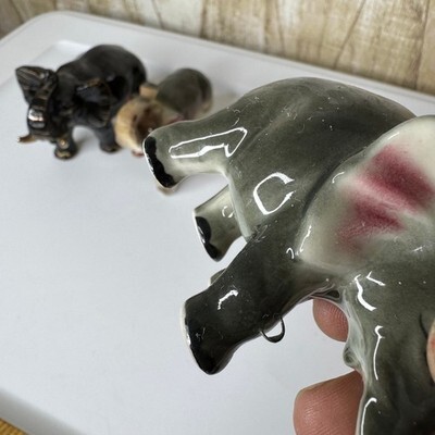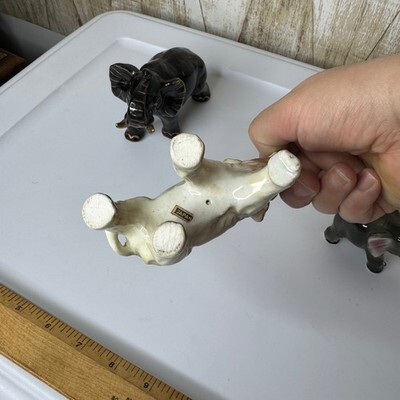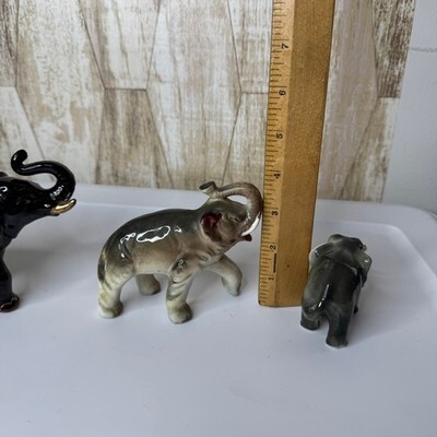 - 3 Vintage Ceramic Elephant Figurines Japan Miscellaneous Knickknack Lucky Safari