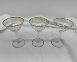 - 3 Vintage Hollywood Regency Optic Glass Gold Band Stripes Cocktail Glasses
