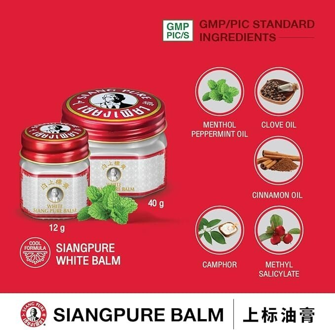 - 3 X 40gr Siang Pure White Balm Muscle Pain Relieve Sprain Bruises