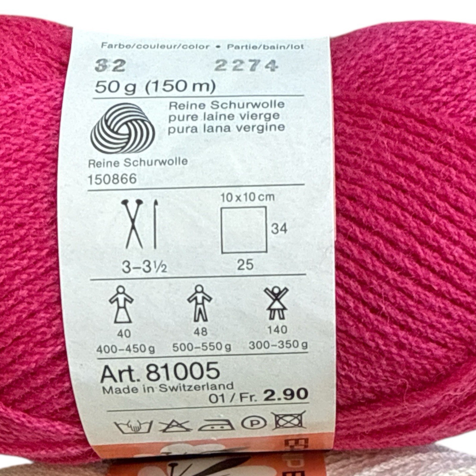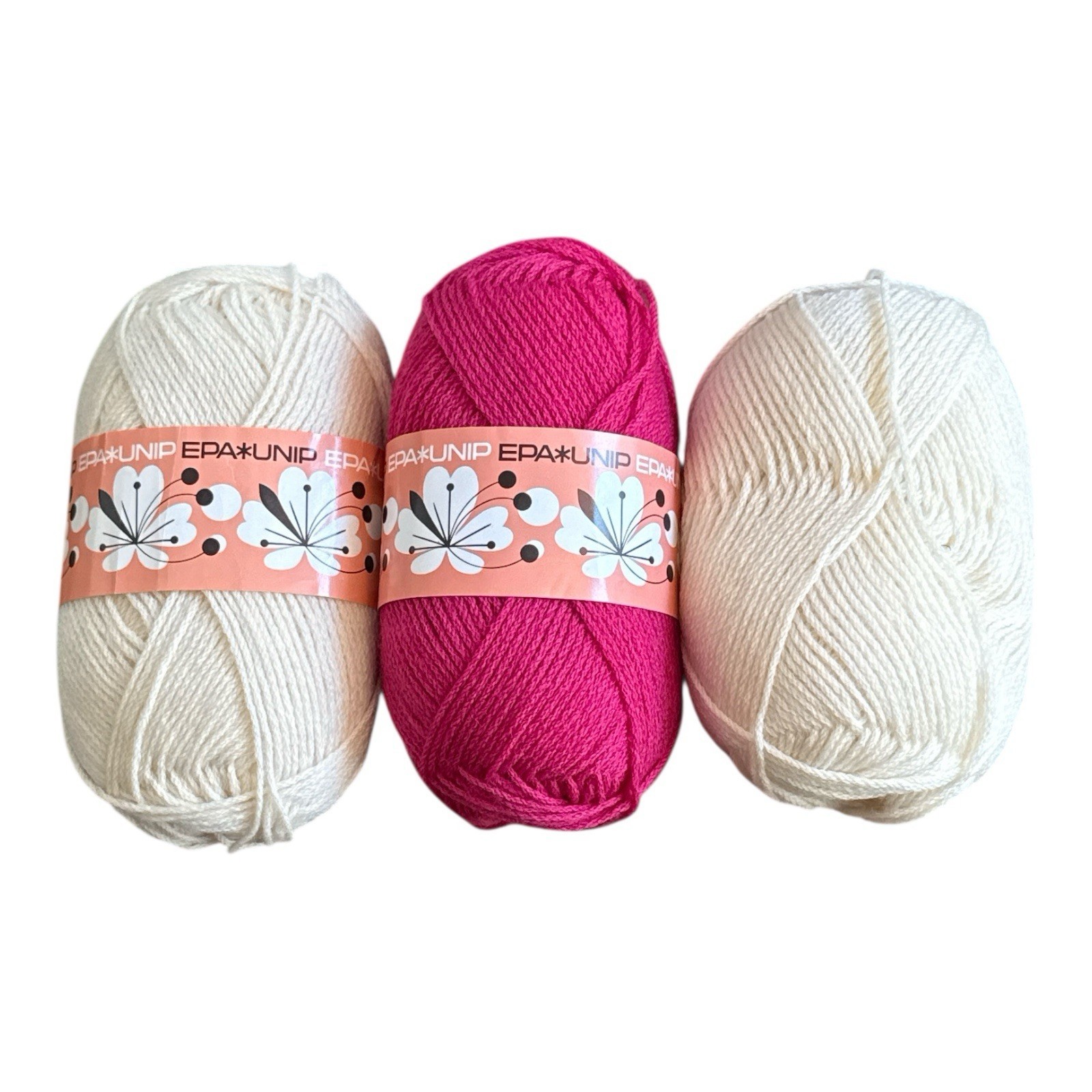 - 3 Yarn Balls EPA UNIP YARN Bright Pink and Cream Made in Switzerland 100% Wool