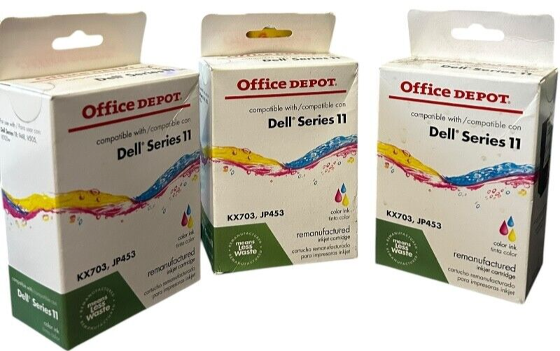 new old stock - 3 packs - Office Depot Dell Series 11 Remanufactured Color Ink Cartridge