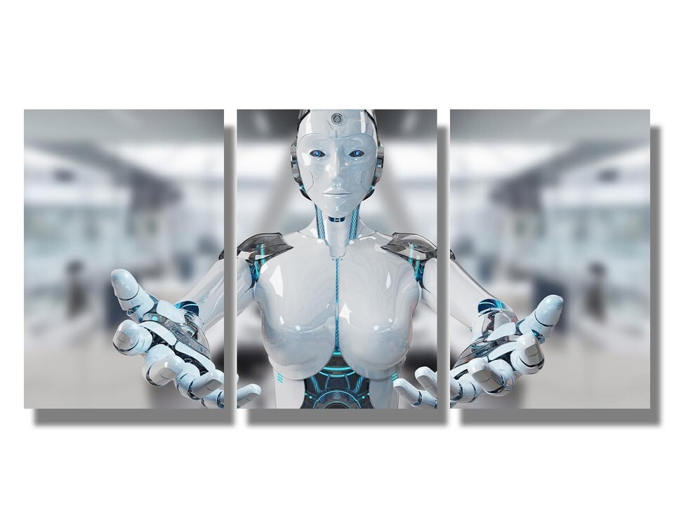 - 3 pcs AI Machine Learning Robot Human Touch Canvas Wall Art 36x16