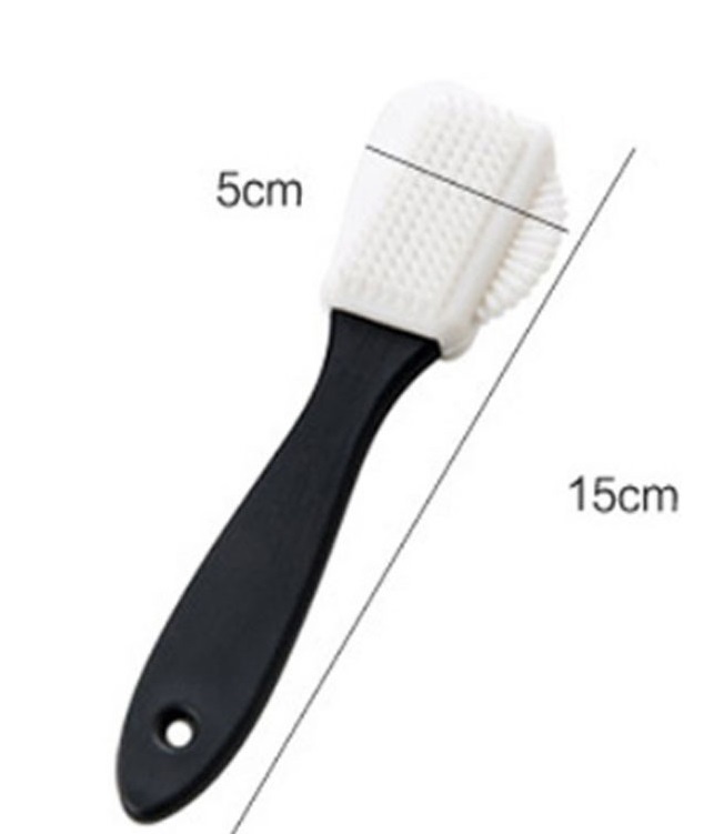3 sided suede cleaning brush, with nylon, wire and plastic edge to clean shoes