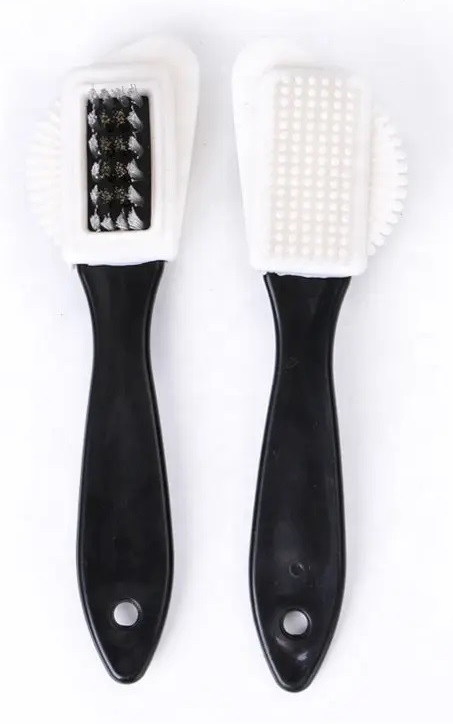 - 3 sided suede cleaning brush, with nylon, wire and plastic edge to clean shoes