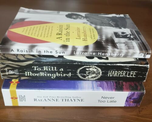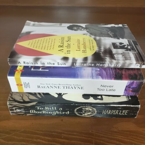 - 3 x Paperback Book Lot - To Kill a Mockingbird, A Raisin in the Sun, Nvr 2 Late