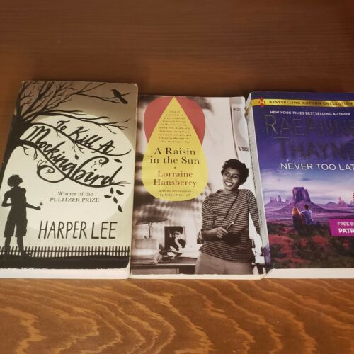 3 x Paperback Book Lot - To Kill a Mockingbird, A Raisin in the Sun, Nvr 2 Late.
