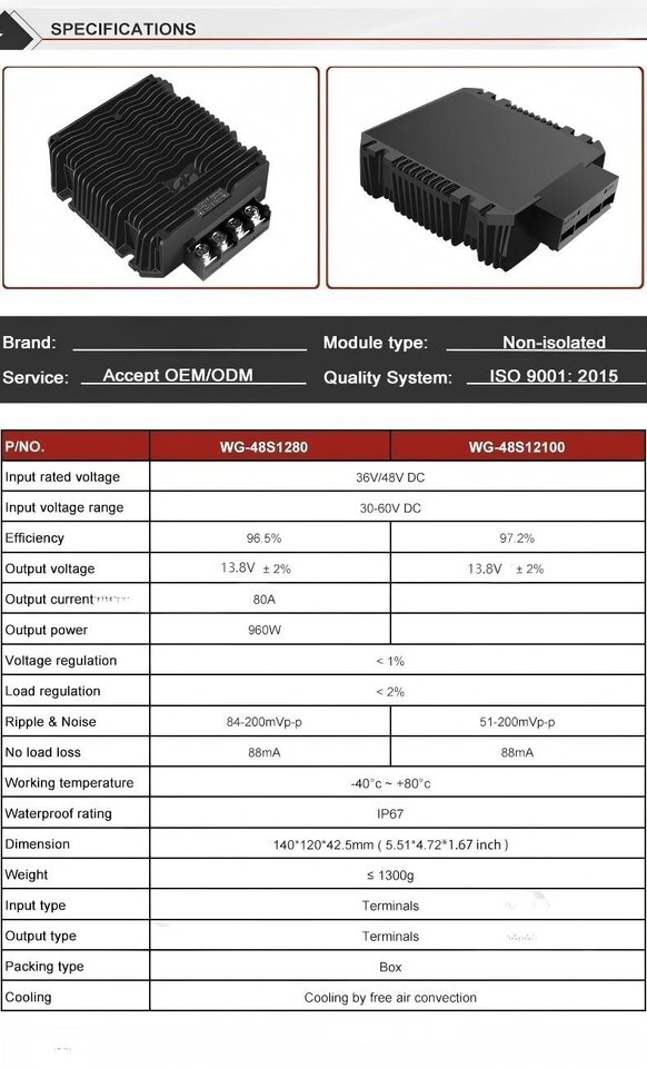 - 30-60V 36V/48V to 13.8V 80A DC Buck Converter Step Down Power for Car Truck Boat