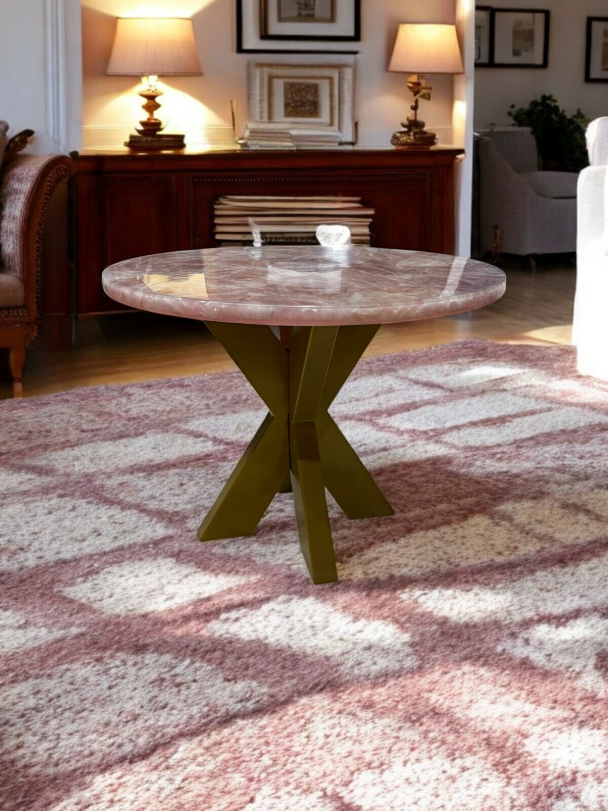 30" Rose Quartz Stone Coffee Table Top Healing Crystal Console Bar Desk Home Dec