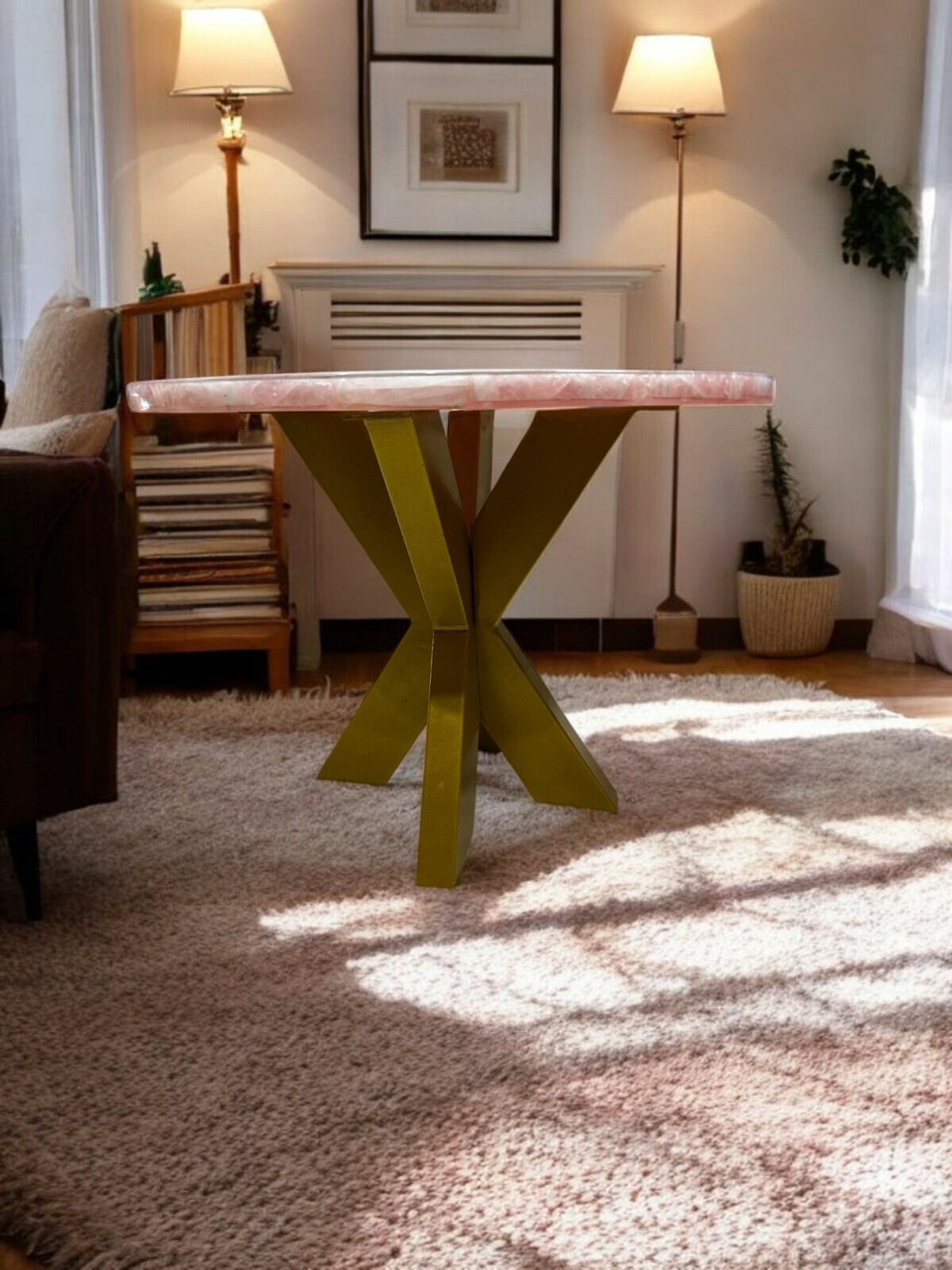- 30" Rose Quartz Stone Coffee Table Top Healing Crystal Console Bar Desk Home Dec