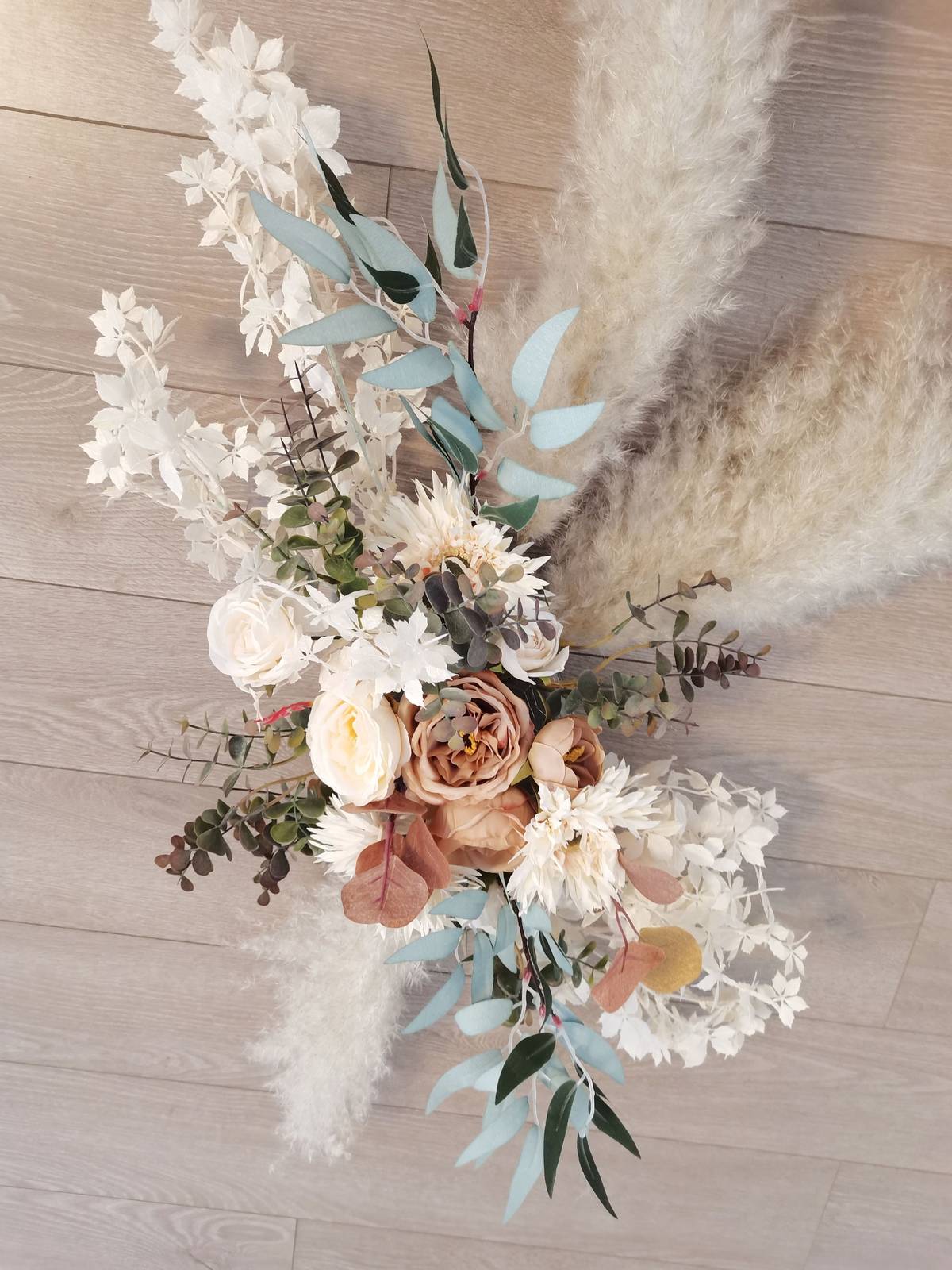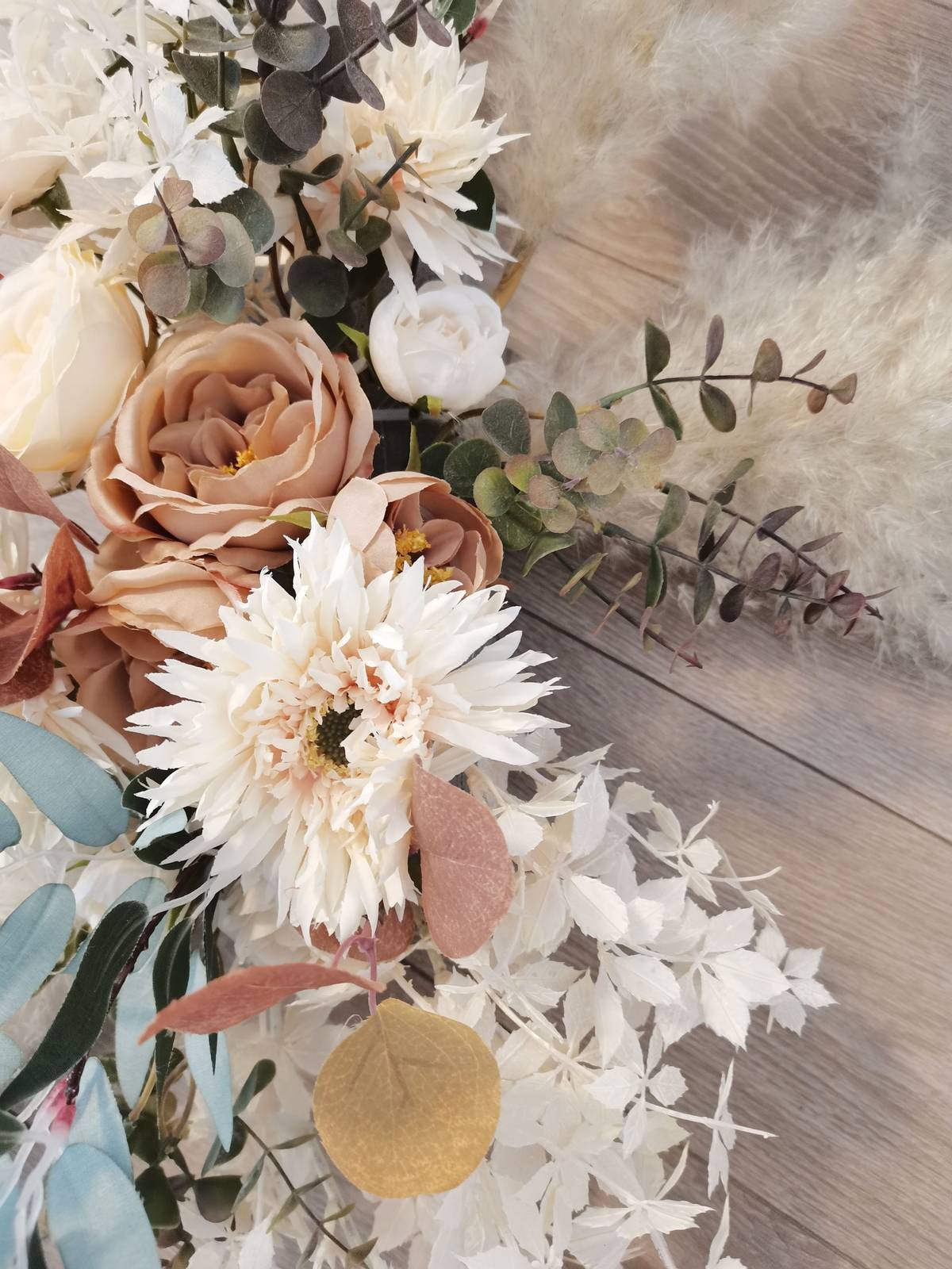 - 30"Wedding brown rose flower arch, fall Flower Swag Backdrop pampas floral