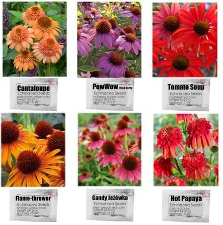 Name: 6 Packs Echinacea Purpurea Coneflower Seeds 6 Color Varieties Individual Package