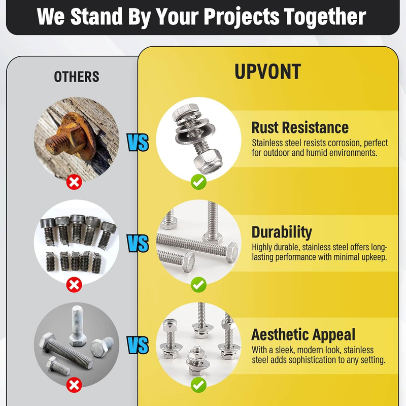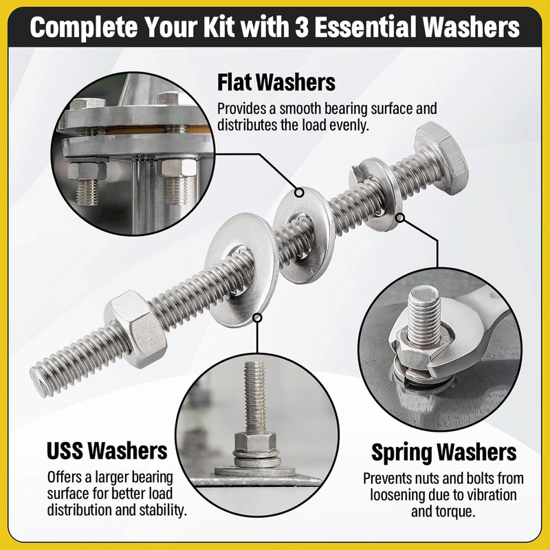 ?COMPATIBLE WITH STANDARD HARDWARE: Crafted from high-quality 304 stainless steel, our bolts and nuts set boast clean, burr-free threads, ensuring smooth fitting. All products meet ANSI standards and can be seamlessly interchanged with your existing hardware.