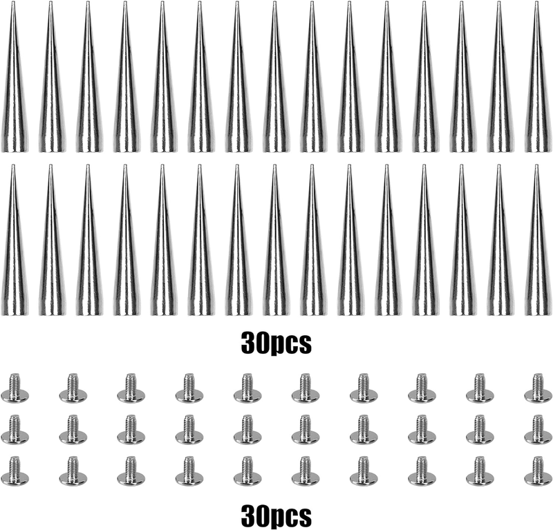 PURPOSE: Cone spikes studs are perfect for art making, leather crafts and clothes making, such as shoes, belts, handbags, jackets, leather bracelets etc. It fully shows your special taste and personality.