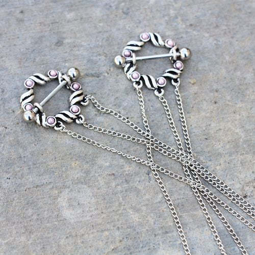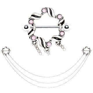 * Ribbon shaped nipple shields are decorated with multiple Pink synthetic pearl beads