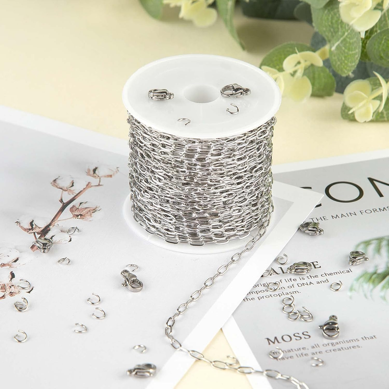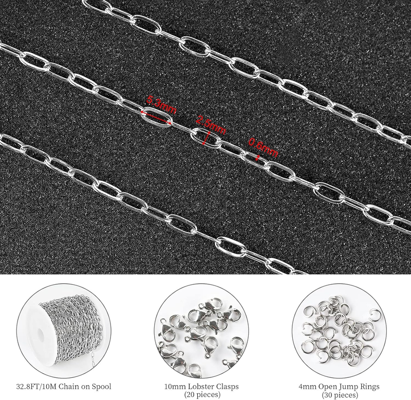 ?Package Include? The jewelry making supplies kit included a roll of 10 meters welded 304 stainless steel small paperclip chains, 30 pieces stainless steel jump rings and 20 pieces stainless steel lobster clasps. It is convenient to use these jewelry supplies for your DIY crafts.