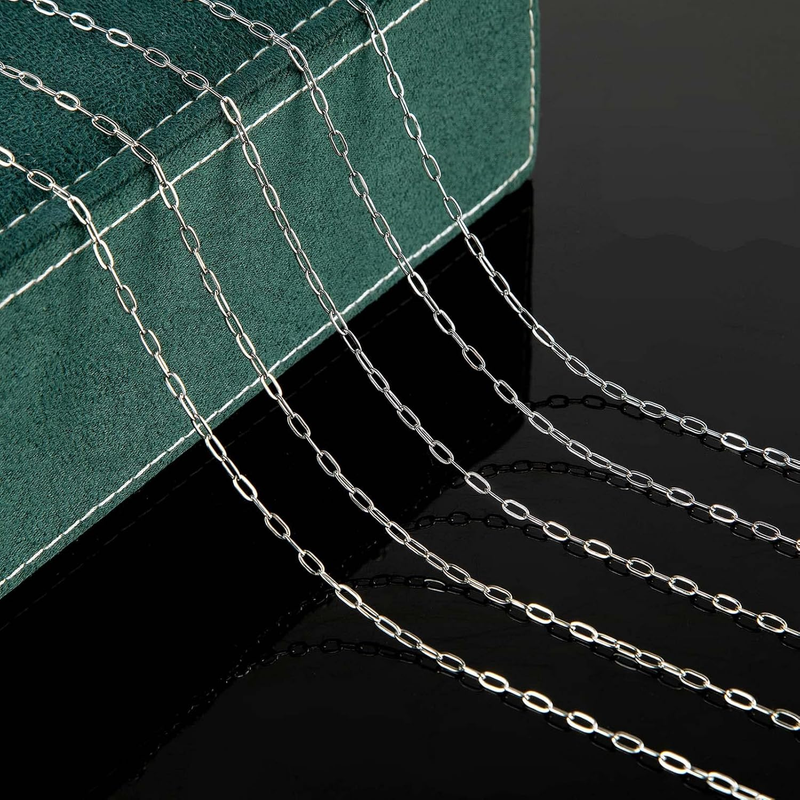 ?Wide Application? This dainty oval paper clip chain spool is great for DIY jewelry like necklaces, bracelets, earrings, chokers, anklets, etc; also can be used as an eyeglasses chain, mask holder, waist belt, sweater/jean chain, pet chain, bag decoration chain, and so on. It's still a nice gift for birthdays, Christmas, Thanksgiving Day, Valentine's Day, Graduation, etc.