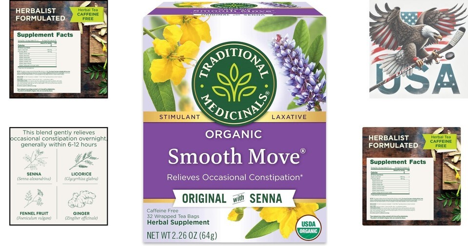 - 32 Count Organic Smooth Move Tea - Gentle Constipation Relief, Sweet & Aromatic