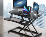 - 32 Inch Black Sit Stand Desk Riser, Height Adjustable Workstation Tray