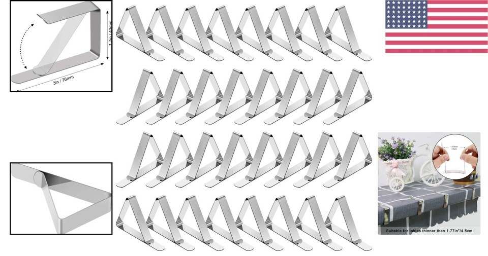 - 32 Pack Stainless Steel Tablecloth Clips - Perfect for Outdoor Picnics & Parties